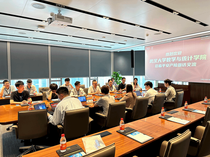 上午,实践队一行与平安产险部门负责人开展交流座谈。会上,研究生辅导员介绍了学院学生规模、专业分布和近三年毕业生就业去向的相关情况。平安产险邵经理指出,武汉大学与平安产险�2017年以来在赛事赞助等方面已建立密切的合作,希望在人才培养、项目合作以及校外导师上能够进一步加强联系。邵经理详细介绍了公司的业态分布和文化愿景,重点指出公司正在进行数据化转型,因此需要大量的数据类、精算类人才作为支撑,表达了对武大学子的欢迎与期待。在邵经理的详细介绍下,同学们了解到平安产险公司的巨大规模与深远影响力�