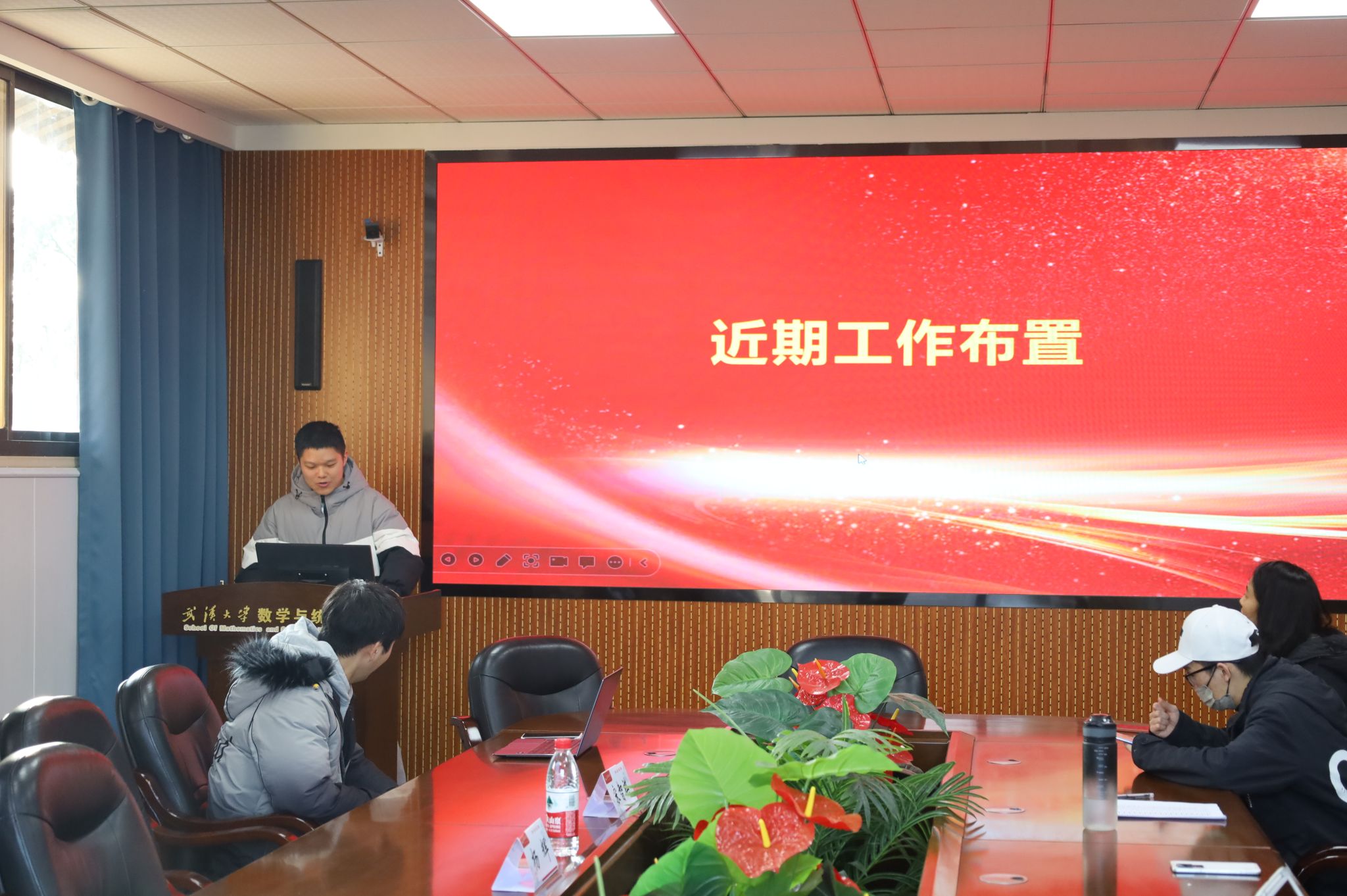 培训会结束后,主席团成员周洋主持以“铸牢中华民族共同体意识”为主题的例会学习,全体研究生会成员齐唱国歌,并一同观看学习了铸牢中华民族共同体意识的视频。他简单布介绍了近期研会的工作安排,包括元旦晚会、羽毛球赛和乒乓球赛等。他指出,研究生会要始终以服务学生为宗旨,在工作中加强反思、总结经验、推动进步。