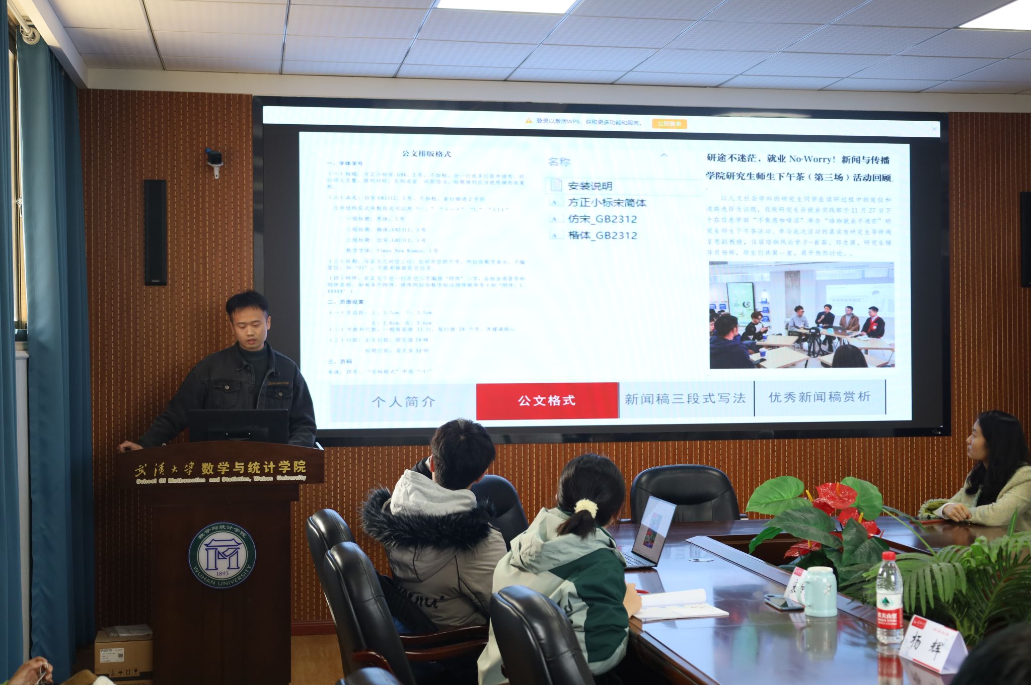 第二十二届研究生会第二次例会暨新闻稿撰写专项培训会顺利举行。会议邀请新闻与传播学院研究生辅导员杨辉老师、兼职辅导员卢熙民老师进行新闻写作培训指导,全体院研究生会成员参加会议。本次培训会由院团委副书记、研究生辅导员宋智祺老师主持。