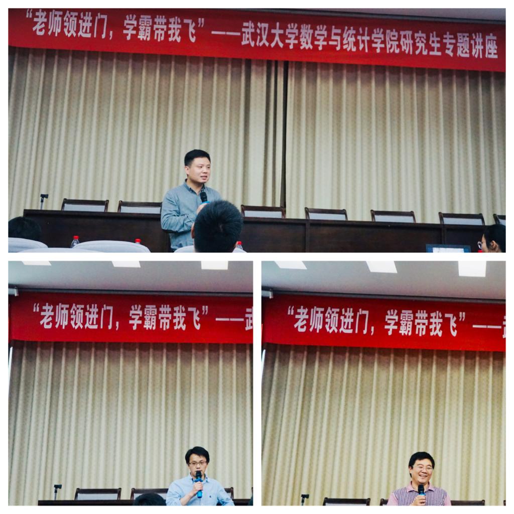 讲座分为两个部分。第一部分是“老师带我飞”环节,三位老师从科研生活、论文发表等方面结合自己的经验,给同学们提出了中肯的建议。陈国贤老师建议选题要切合自己的实际,在开展研究时应多做调研,了解国际上的进展,在遇到瓶颈时可以考虑非本专业的知识,从其他角度考虑问题。洪桂祥老师主要强调在数学学习和科研过程中理解和领悟的重要性,建议同学们独立证明定理,探索定理中最本质的内容。刘伟老师主要介绍了论文投稿的流程,强调在投稿时应注意格式要求,同时建议同学们写作前期多参考优秀论文,学习论文的主要框架和结构。此外,三位老师均建议同学们多多参加报告,可以在报告中了解研究方向的前沿和进展,也能够拓宽自己的思路。