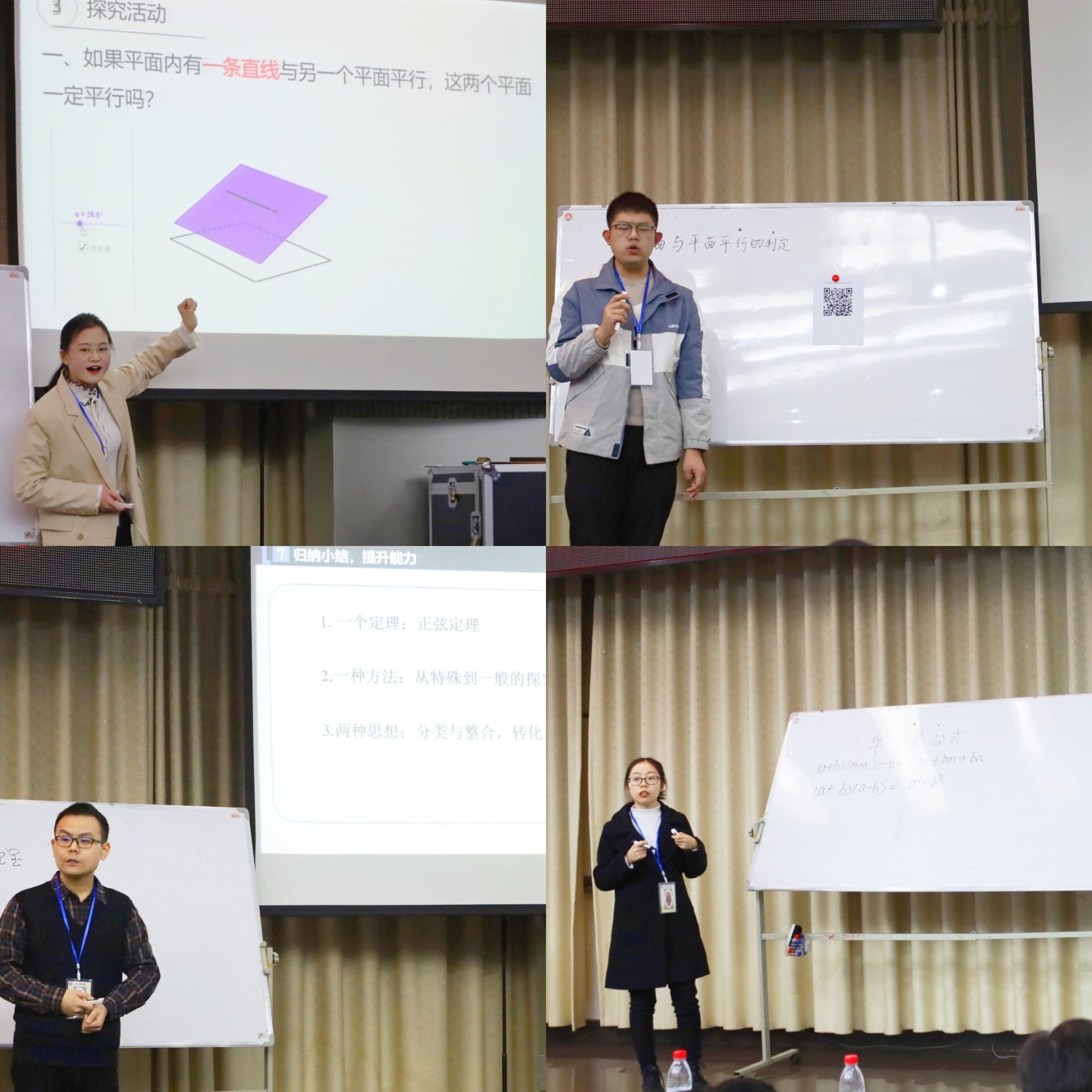 参赛选手们准备充分,按抽签顺序依次进行了精彩的讲授。选手们讲课的内容广泛,涵盖了中学数学的许多重要知识点,如平面与平面平行的判定定理,直线与平面平行的判定定理,正弦定理,平方差公式,椭圆及其它圆锥曲线,等差数列,余弦定理,直线与平面垂直的判定定理,条件概率,直线与圆的位置关系,函数的单调关系等。