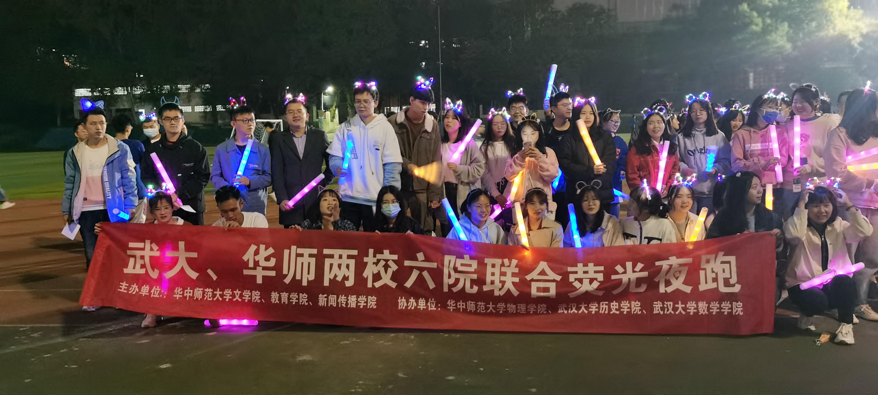 、历史学院两校六院研究生会联合举办“无体育,不青春”荧光夜跑活动。