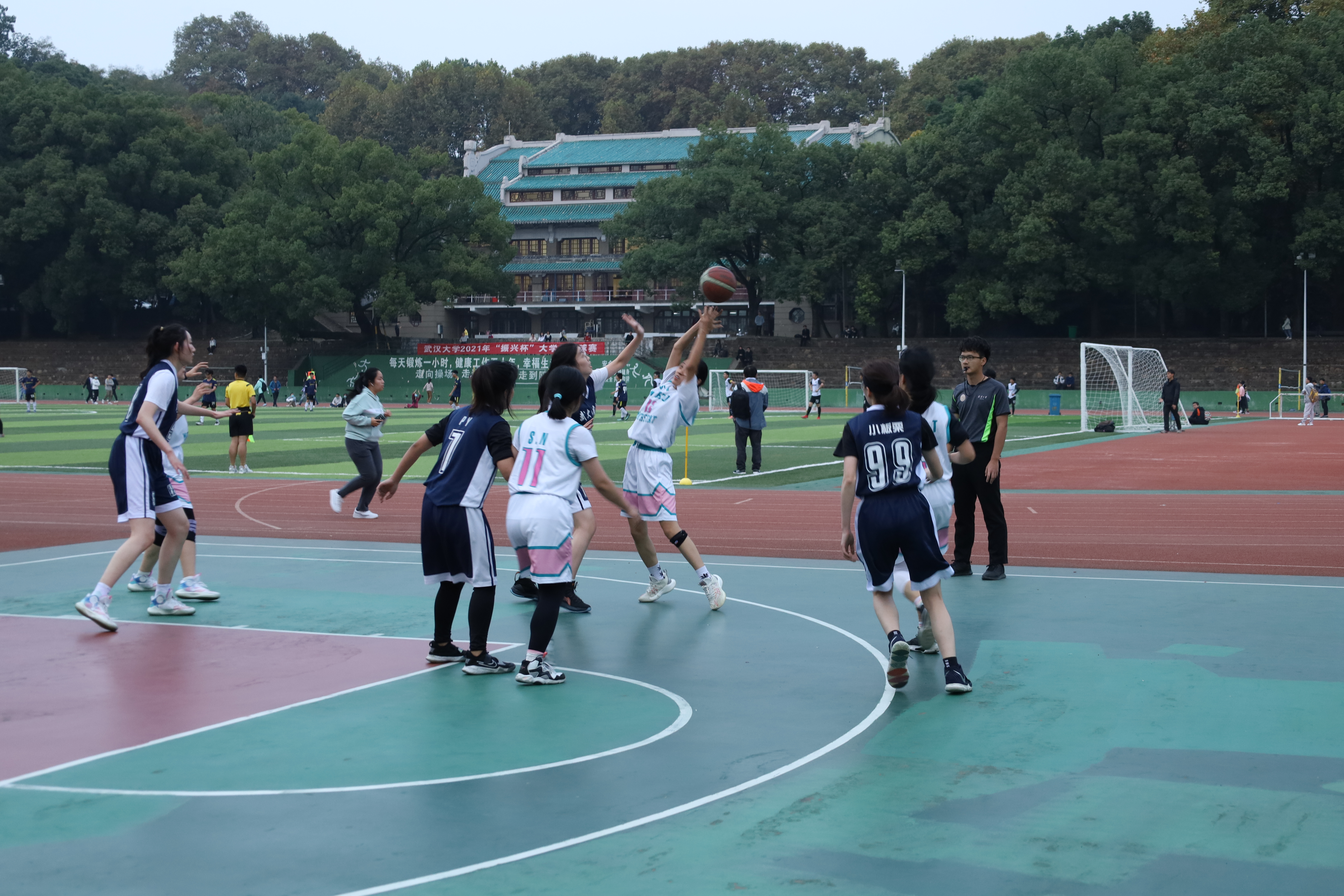 2021年11月1日下午四点半,数院女篮队与法院女篮队于桂园操场5号球场开始比赛。这是继本届篮球赛开赛以来成人导航