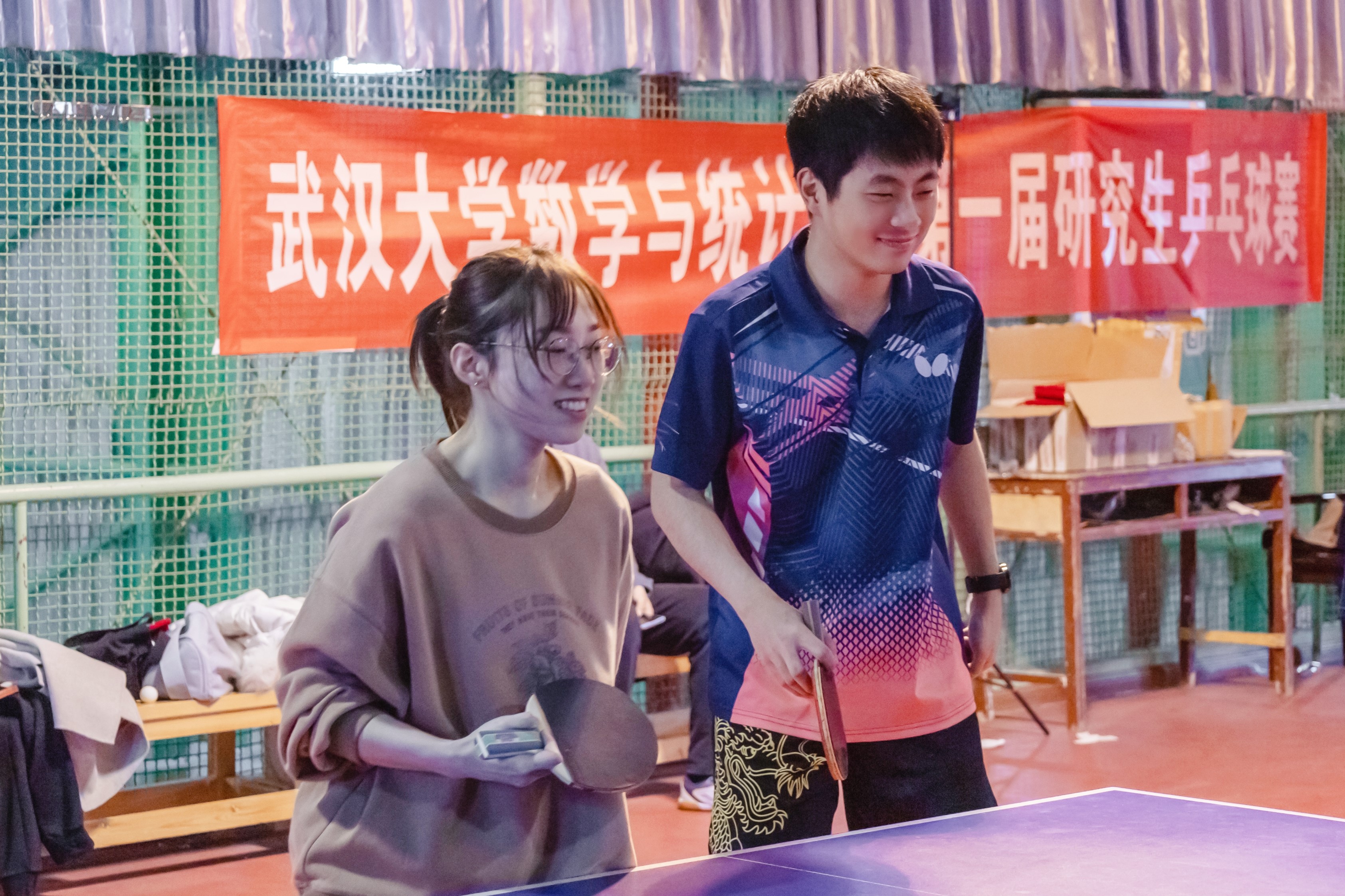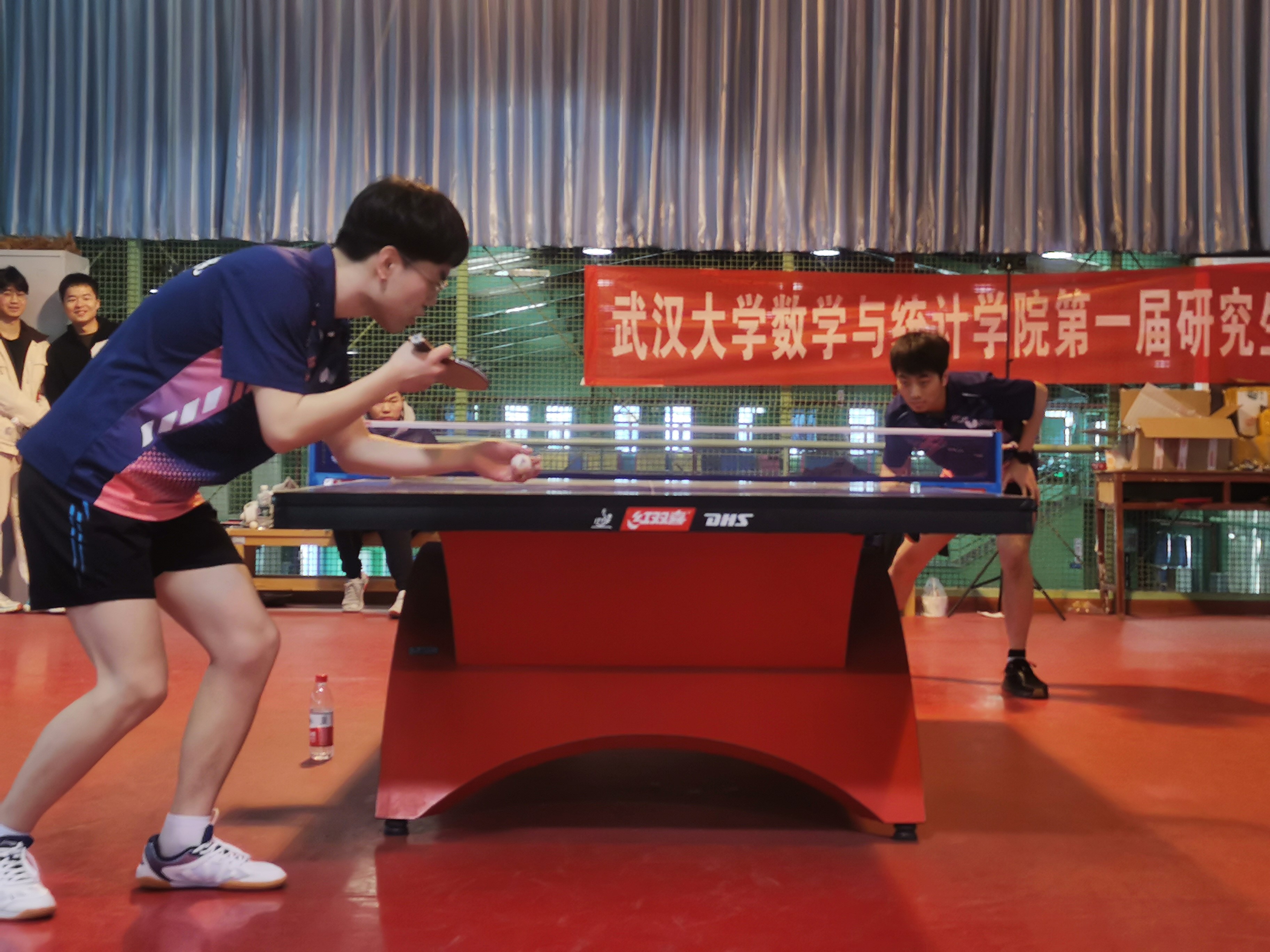 2023年2月26日,武汉大学数学与统计学院第一届研究生乒乓球赛在风雨乒乓球馆顺利举办。本次比赛设有男子单打、女子单打、男子双打、女子双打与混合双打共5个项目,参赛人数达到40余人。作为数学与统计学院首届研究生乒乓球赛,选手们也很热情的早早聚集在了球馆进行热身,场下球员的朋友们以及看比赛的观众们同样关注着比赛的进行,球馆内洋溢着激情与温馨的氛围。下面让我们一起回顾本次精彩而又激烈的乒乓球赛。