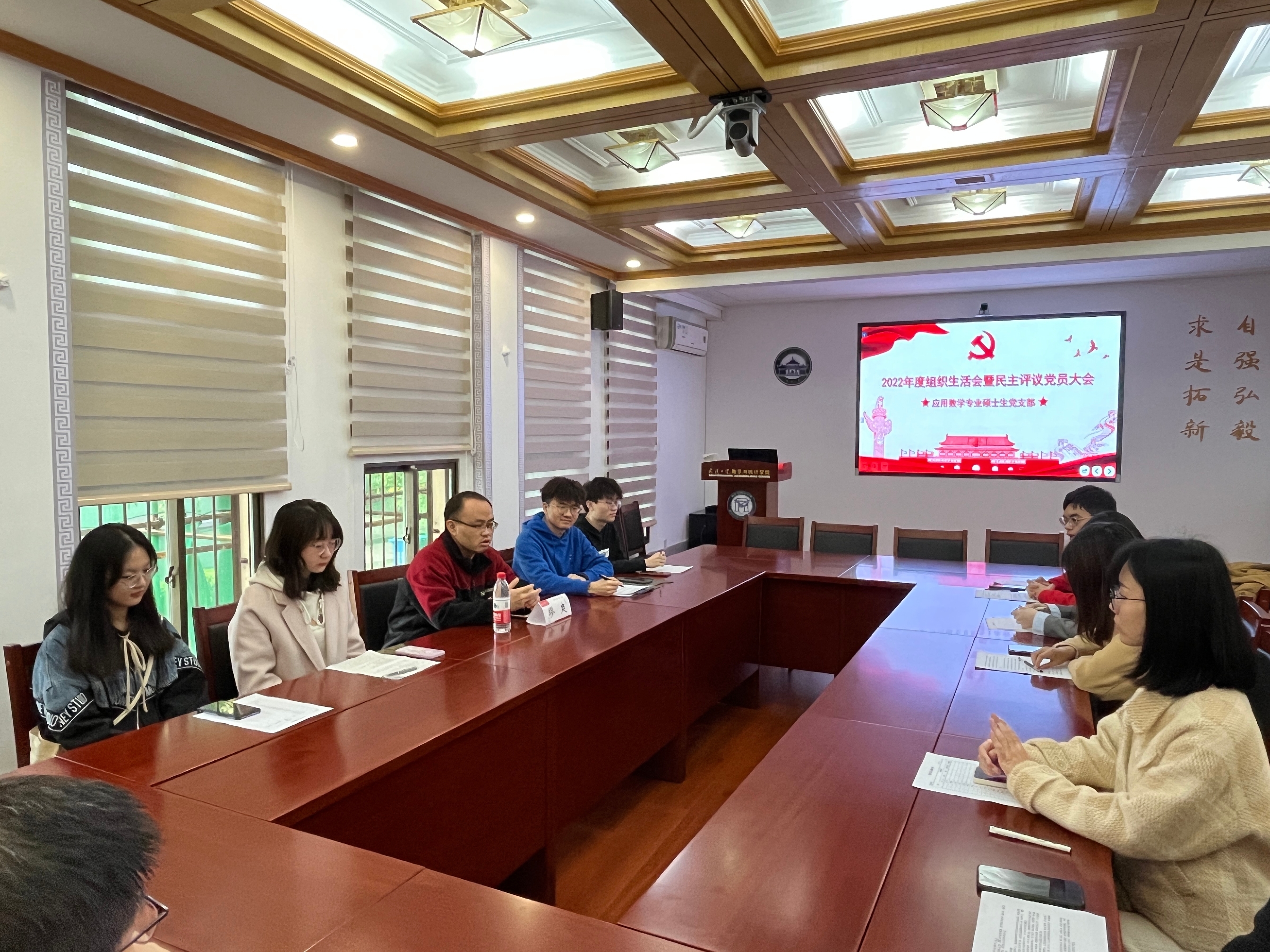 应用数学专业硕士生党支部召开2022年度组织生活会暨民主评议党员大会。会议由党支部书记栾阳阳同志主持,院党委委员缪爽老师莅会指导。