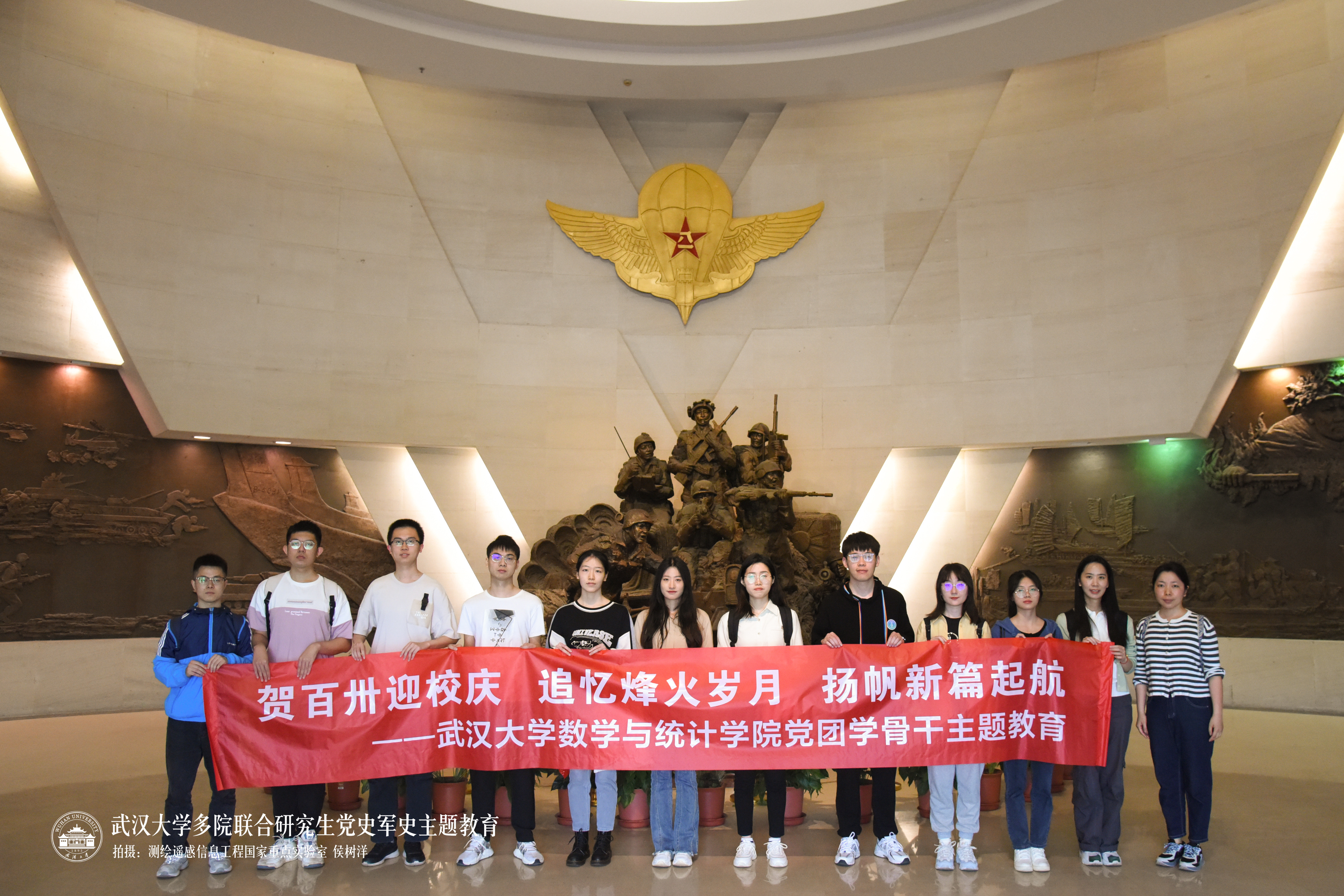 4月16日上午,为深入学习贯彻习近平新时代中国特色社会主义思想和党的二十大精神,推动思想政治教育走深走实,以饱满精神喜迎武汉大学和武汉大学数学学科成立130周年,我院组织研究生党团学骨干,与新闻与传播学院、法学院、口腔医学院、中国边界与海洋研究院、国际问题研究生、测绘遥感信息工程国家重点实验室联合组队,赴全国爱国主义教育示范基地-孝感市空降兵军史馆开展“赓续军队红色血脉 激扬青春奋进力量”主题参观学习。
