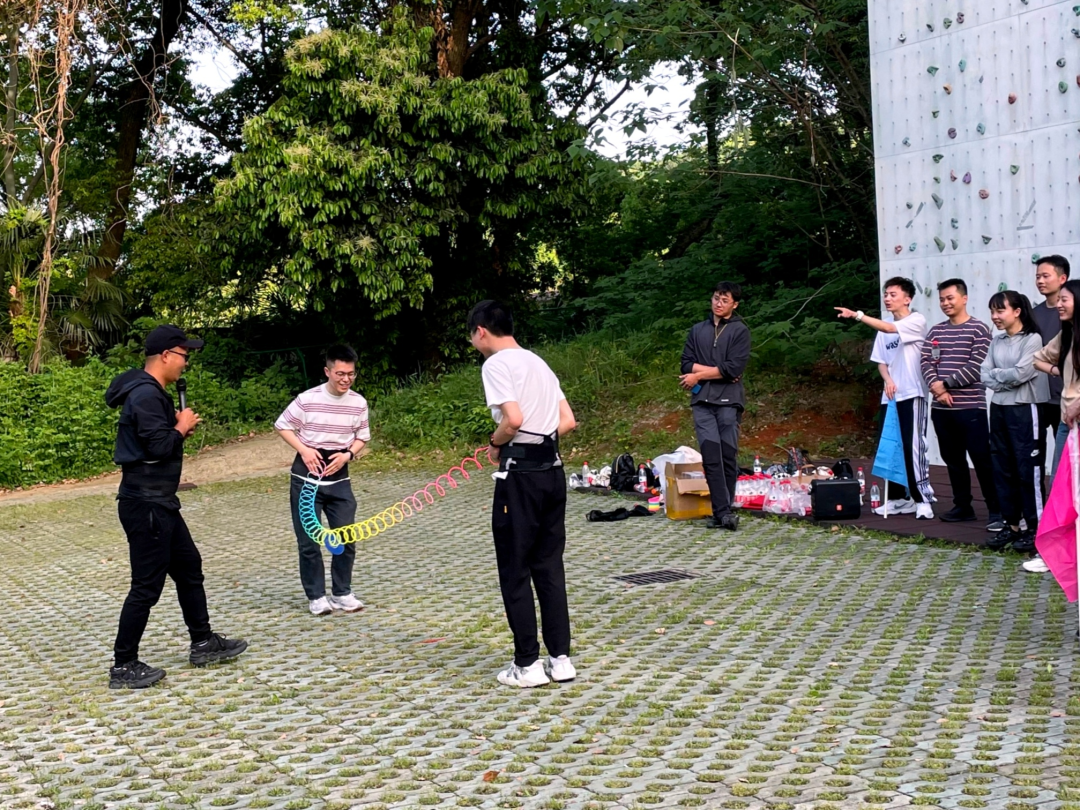 参访结束后,我院和新闻与传播学院、法学院师生来到中国地质大学(武汉)素拓基地开展素拓团建活动。同学们在培训师的引导下通过随机组队、队长推荐、姓名速记等游戏迅速破冰。在随后的“极速60秒”“光盘拔河”素拓活动中,各队师生充分协作,在轻松愉悦的气氛中提升了院际的团队协作能力及凝聚力。