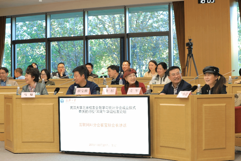 10月22日下午,武汉大学北京校友会数学与统计分会成立仪式暨庆祝母校130周年华诞校友论坛在北京隆重举行。北京校友会执行会长喻杉、互联网与AI分会会长崔宝秋、法学分会会长郭卫东、武汉大学数学与统计学院党委书记左军、在京各界校友代表出席。老中青珞珈人80余位欢聚一堂,共同见证历史性喜庆时刻,祝福礼赞百卅母校和数学学科创建130周年华诞。