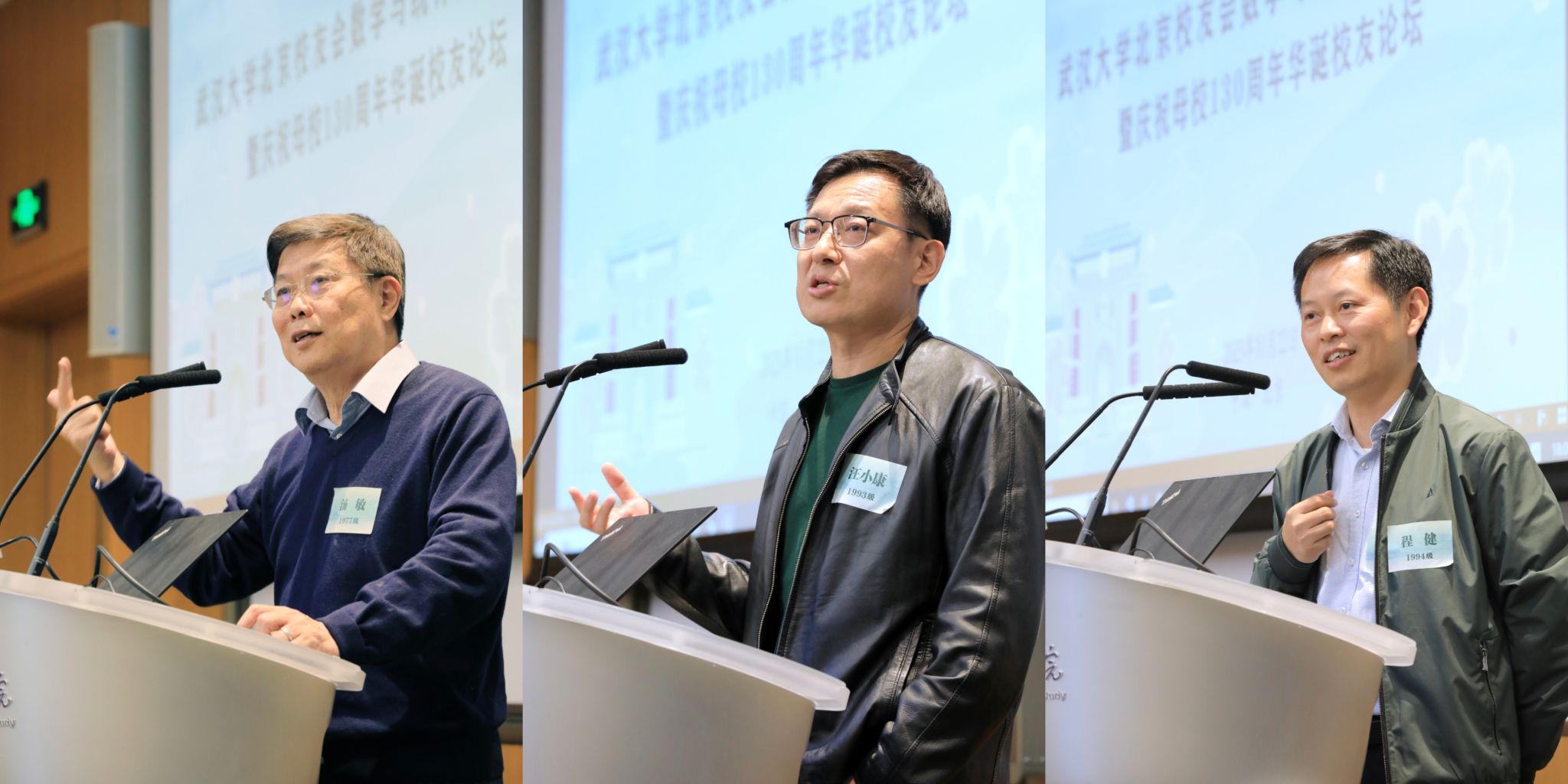 国务院参事、1977级院友汤敏总结求学期间武大数学系的多个“第一”,表示成立北京校友会数学与统计分会极有意义,校友们要齐心协力、勇攀第一。他提议设立“珞珈山外大讲堂”,帮助校友们拓宽领域、寻找机会、持续升值。泥藕资本创始合伙人、1993级院友汪小康分析现阶段资本市场结构发生的巨大变化。他认为,要认知洞察产业变革,投资行业既要懂新技术,又要懂能落地。中国科学院南京人工智能芯片创新研究院院长、1994级院友程健回顾其从数学走向人工智能又回归数学的经历。他希望数院学子能够以数学为基础,在不同的领域发光发热。