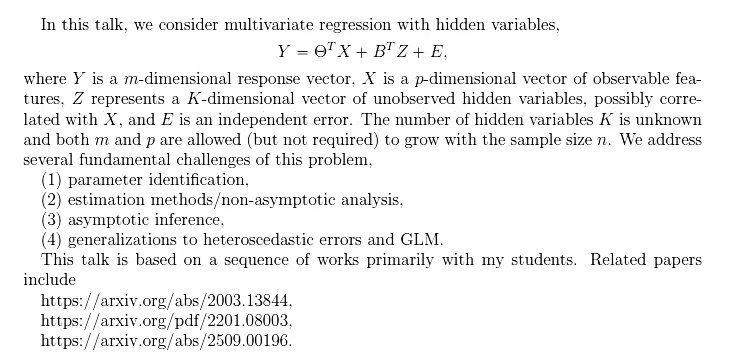 Speaker Biography:Dr. Ning is an associate professor in the Department of Statistics and Data Science at Cornell University. He received his Ph.D in Biostatistics from the Johns Hopkins University and was a post-doc at Princeton University and University of Waterloo. His research interests focus on high-dimensional statistics, and statistical inference in machine learning problems.