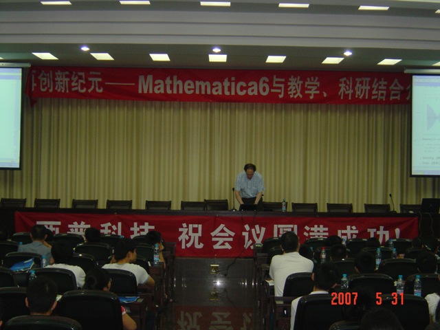 数学会堂及数学建模基地举行。6月31日下午,美国Wolfram研究公司的战略暨国际发展执行总裁Conrad Wolfram先生作了《再创Mathematica科技计算新纪元》的报告,Wolfram研究公司的高级软件工程师胡一凡博士作了《Mathematica及其在科技领域中的应用》的报告,中国科技大学张韵华副教授作了《Mathematica在教学改革中的作用》的报告。6月1日上午,胡一凡博士对Mathematica 6.0作了介绍和培训。会议由成人导航