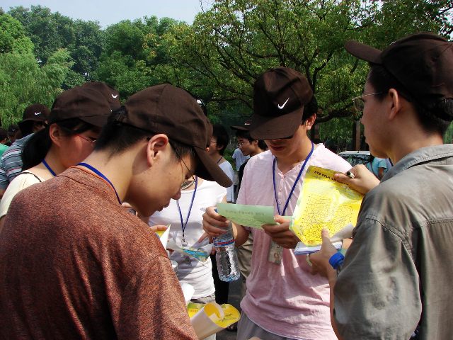 当然,在活动过程中也出现了不少令人啼笑的小插曲,当一个团队发现宝藏的时候,由于采取的“保密措施”不严,致使充当“间谍”的其他团队的队员们发现了秘密,大家便一哄而上,宝藏便成了公开“秘密”,而有些团队大部分是女生,男生很少,“可怜”的男生们就不得不充当“间谍”,施展自己的脚力,尽量跟随在最前沿的破解团队,获得破解的第一首有用的资料。