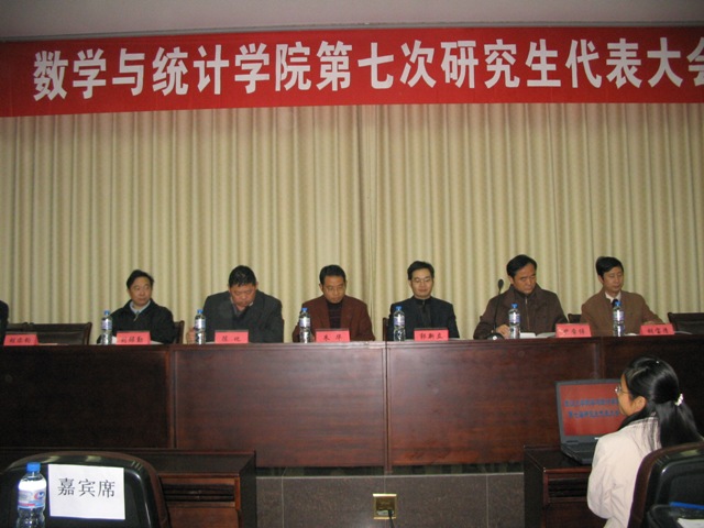 院长陈化教授、院党委书记尹常倬教授、副院长刘禄勤教授、信息与计算科学系主任胡宝清教授、院党委副书记梁涛、院学工办副主任王忠海以及校研究生会主席王焕楠出席了本次会议。物理与科学技术学院、化学与分子学院、政治与公共管理学院、计算机科学学院、信息管理学院、水利水电学院和测绘学院等兄弟学院的研究生会代表到场祝贺。