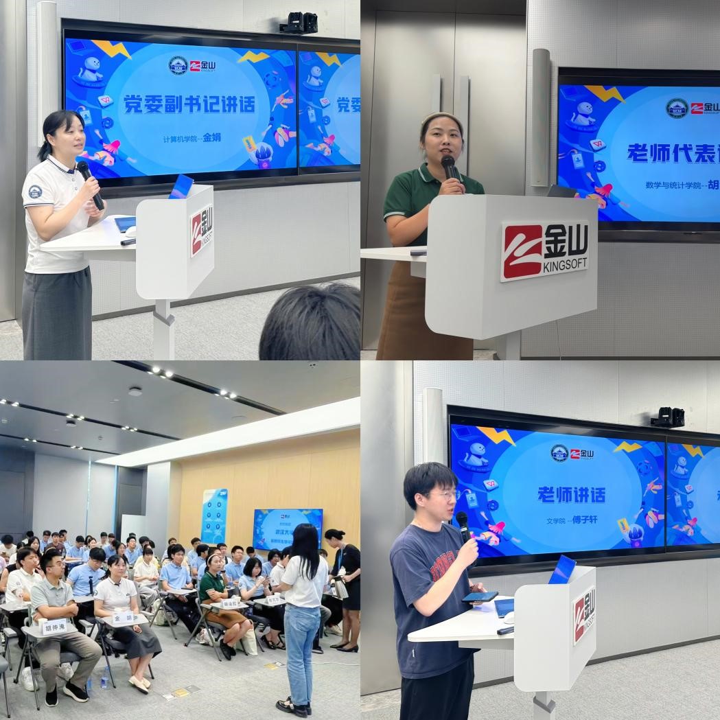 在带队老师发言中,计算机学院党委副书记金娟表示此次访学为同学们未来的职业发展规划进行了指导与启迪,也将构建更多校企合作机会。我院胡法拉勉励同学们珍惜研学机会,积极投入交流学习。文学院傅子轩认为此次参观为同学们提供了深入了解科技企业、拓宽视野、明确未来方向的宝贵契机。