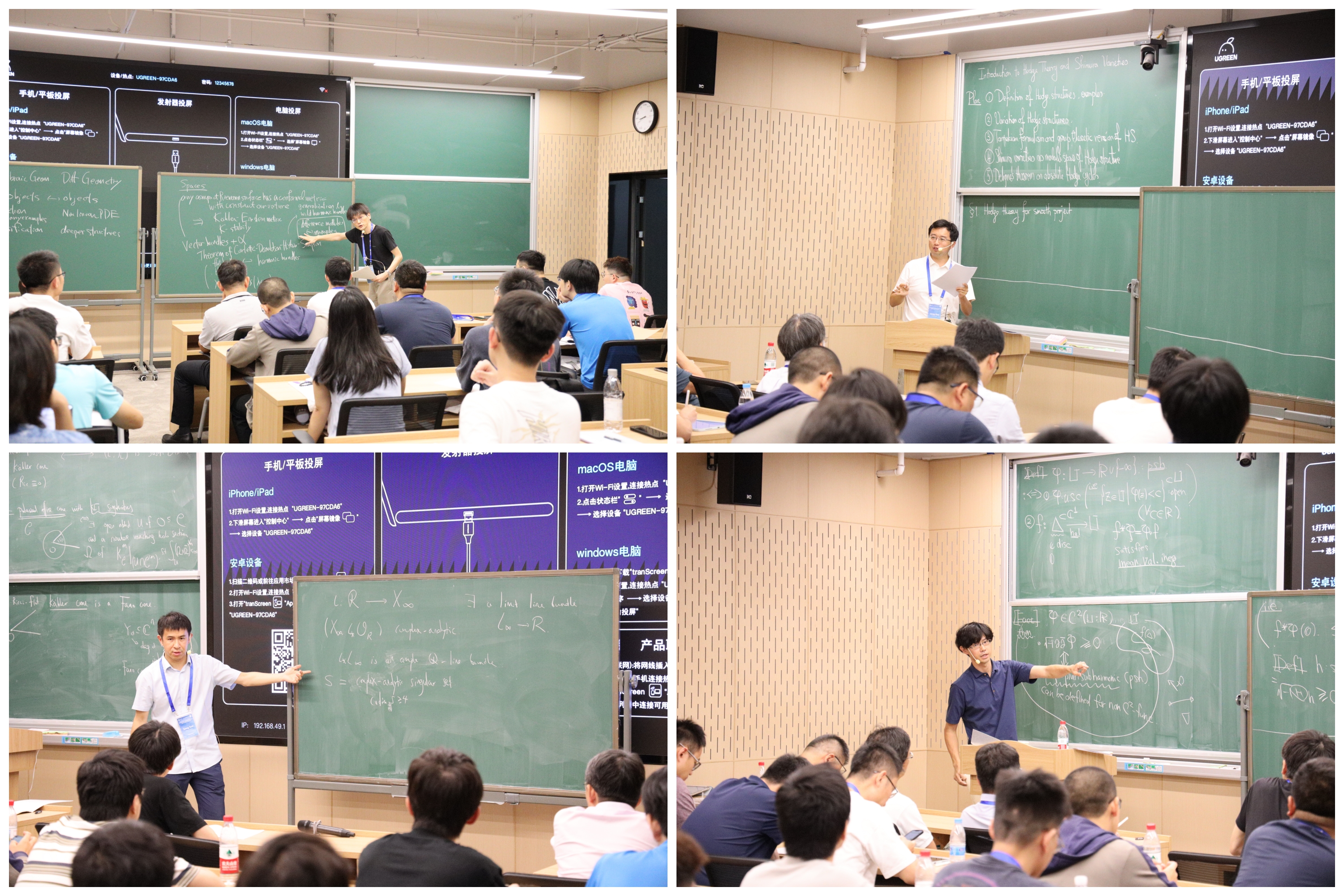 1日至5日的短期课程由日本京都大学的Takuro Mochizuki教授、北京大学的肖梁教授、浙江大学的孙崧教授和日本东北大学的Shin-ichi Matsumura教授主讲,内容分别涵盖周期单极子的Kobayashi-Hitchin对应、志村簇上的霍奇结构、凯勒流形的奇点构成以及向量丛上的奇异厄米特度量理论。此次短课程吸引了来自北京大学、清华大学、中国科学院、复旦大学、中国科学技术大学、南京大学、中国科学院大学、华东师范大学及我校等院校九十余名师生积极参与。与会师生始终保持高度专注,对课程细节踊跃提问、深入探讨。不少学员反馈,此次短期课程不仅加深了对知识点的理解,更拓宽了学术视野。