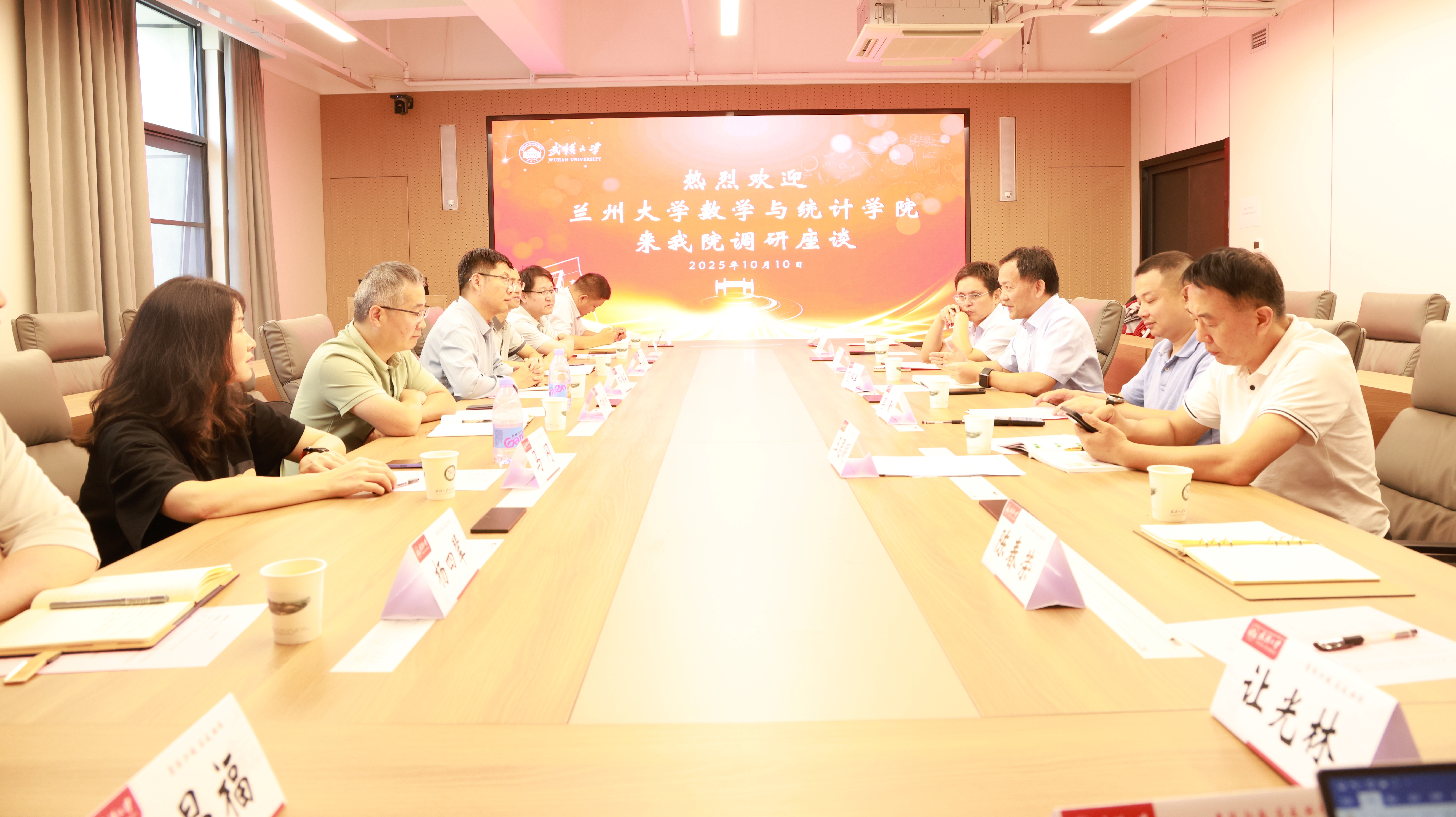 10月9日下午,兰州大学数学与统计学院党委书记乔振峰、院长邓伟华一行来我院调研交流。院长范辉军及党政班子成员、部分系主任参加调研座谈会,院党委书记李勤主持。