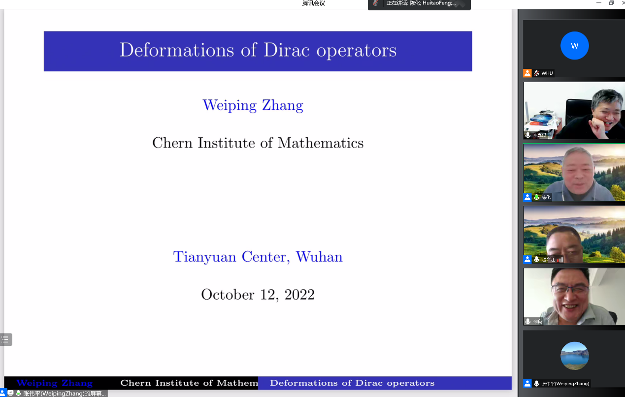 讲学,在国家天元数学中部中心作题为“Deformations of Dirac Operators”的线上Colloquium学术报告。来自日本和欧洲以及国内多位著名专家学者近300人踊跃参加,成人导航