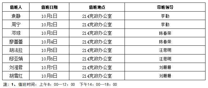(一)严格值班制度。学院值班人员及带班领导须严格遵守假期值班安排,坚守工作岗位,不得擅自离岗、脱岗,确保24小时联络畅通,确保师生办事 “找得到人、办得成事”。