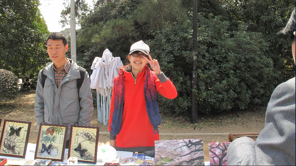 生活部的同学萌生了在樱花节期间利用课余时间售卖武大樱花纪念品的想法,以达到勤工俭学和锻炼自己的目的。在数院老师的支持下,这一活动顺利开展并收到了良好的效果。