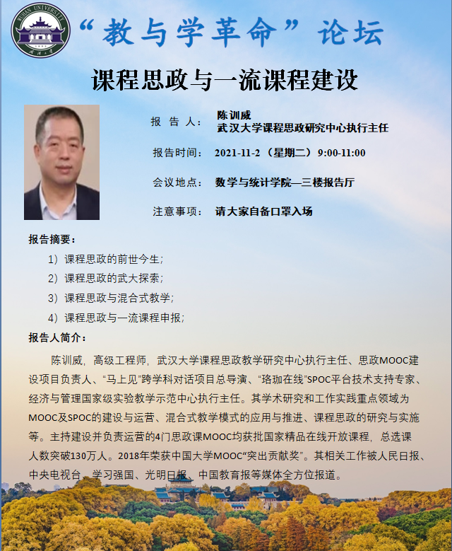 下一条:关于举办武汉大学“课程思政”说课比赛的通知
