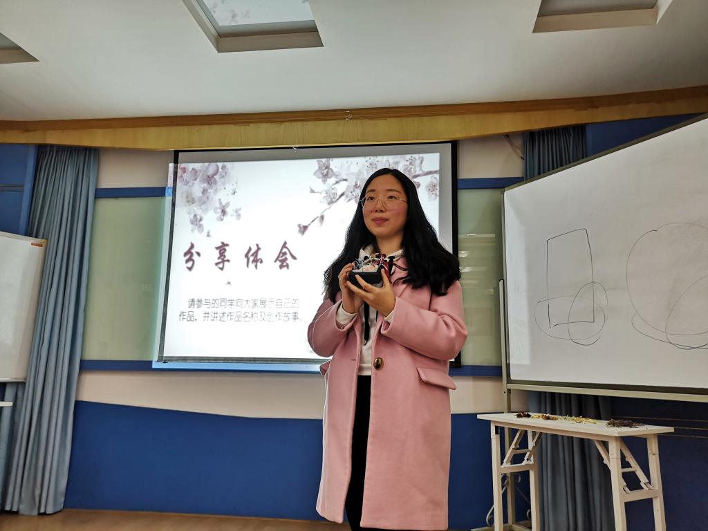 接下来,方圆老师用风趣幽默的语言以及简洁明了的板书展示了香薰蜡片的制作过程,并希望同学们在制作之前能够在脑海中先回忆一段难忘的经历或者一个重要人,以此为灵感构思自己的作品。同学们情绪高涨,纷纷上台挑选自己心仪的花材以及喜欢的香薰精油。然后根据自己想要分享的故事,绘出设计图,随后开始了实际操作。