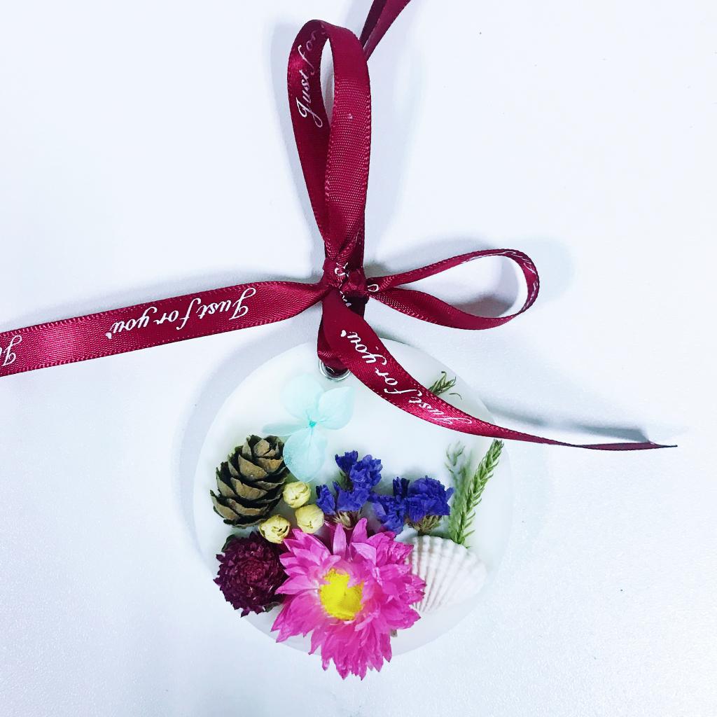 第一次动手,难免因为不熟悉而出现各种差错。同学们在一次次尝试中琢磨蜡凝固的时间,在面积很小的蜡片上,进行花材的布局和色彩搭配,练习倒模,捆扎蝴蝶结。经过近一个小时的努力,每个人的专属香薰蜡片终于完工。