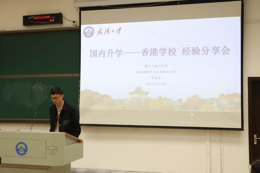 第二位进行分享的是拿到香港科技大学offer的张蔚泓。张蔚泓从香港各高校整体概况、与其他地区的差异性、面试准备与注意事项等多方面向大家详细介绍。他首先介绍了香港和新加坡、英国等不同地区学校的区别,进行香港各高校的情况概览。同时他不仅强调学习成绩的重要性,语言成绩、加分项、各类获奖、学生工作等方面也同样重要。除此之外,他还结合自身情况对于绩点要求、准备时间、如何准备等问题进行了详细回答。