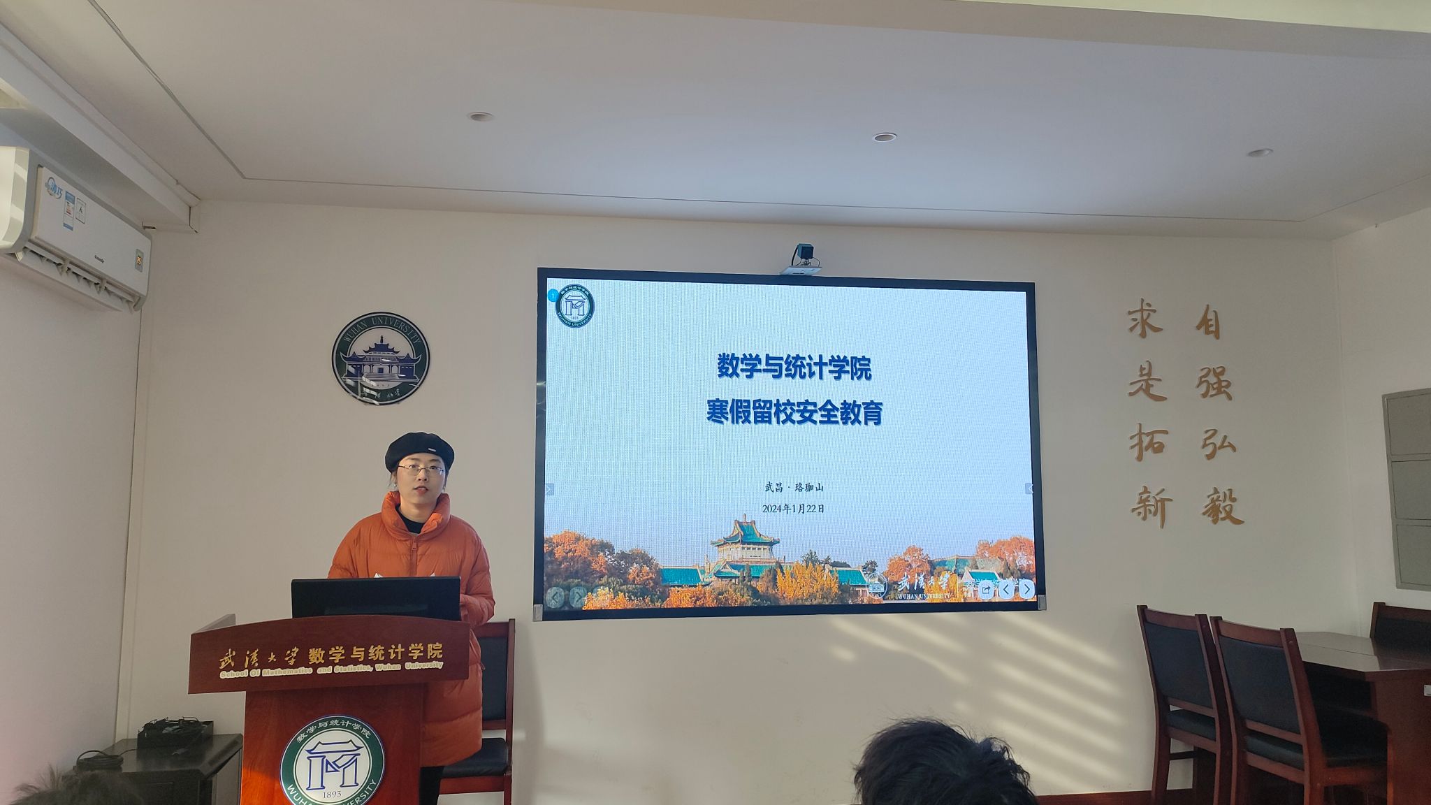 1月22日,数学与统计学院2024寒假留校安全教育座谈会在院楼会议室举行。院学工办主任胡法拉老师出席座谈会,我院全体寒假留校本科生参加,本科生辅导员廖蕾蕾主持会议。