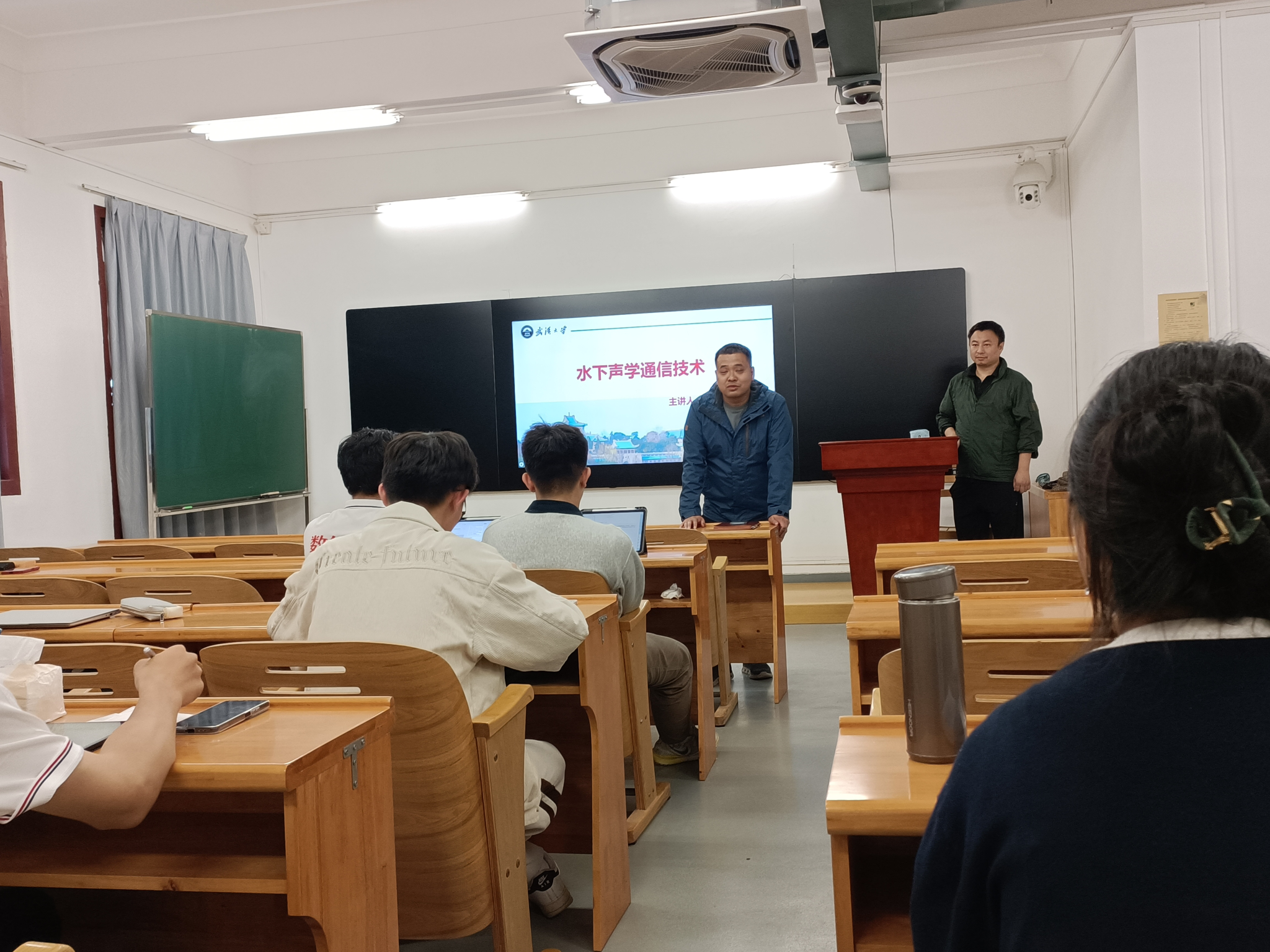 卫星导航中心江鹏教授应邀为同学们讲述“水下声学通信技术”课程。院团委书记刘宇晖主持本次课程。