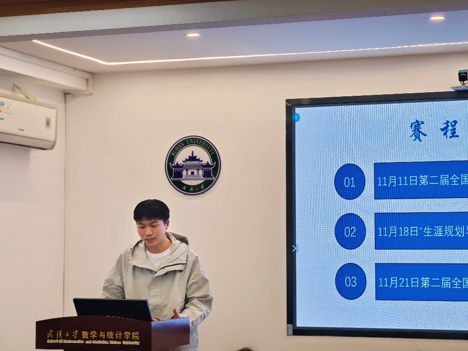 谈华敏介绍数学与统计学院大学生职业规划大赛的具体安排,并鼓励同学们开展以“生涯规划与职业发展”的主题班会,共同探讨交流自己的规划与发展方向。