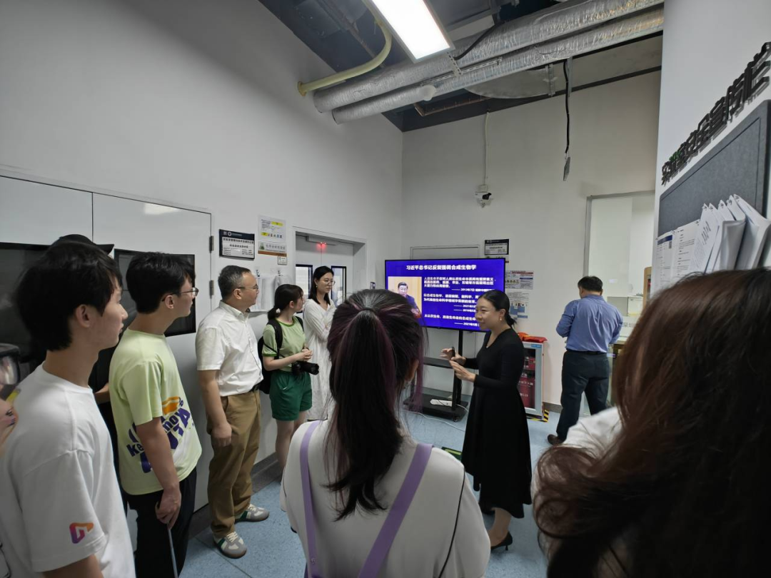 随后,实践队参观了先进院合成生物学研究所,负责人向同学们介绍了合成生物学的发展现状及其重要性,强调研究所科技创新及产业孵化“五位一体”“双环耦合”的发展模式,在重大科技基础设施的不断投入下,研究所正在逐步实现从科学研究到产业转化的发展趋势,并将为中国实现高水平科技自立自强,推动中国合成生物产业迅速发展,贡献属于深圳的力量。