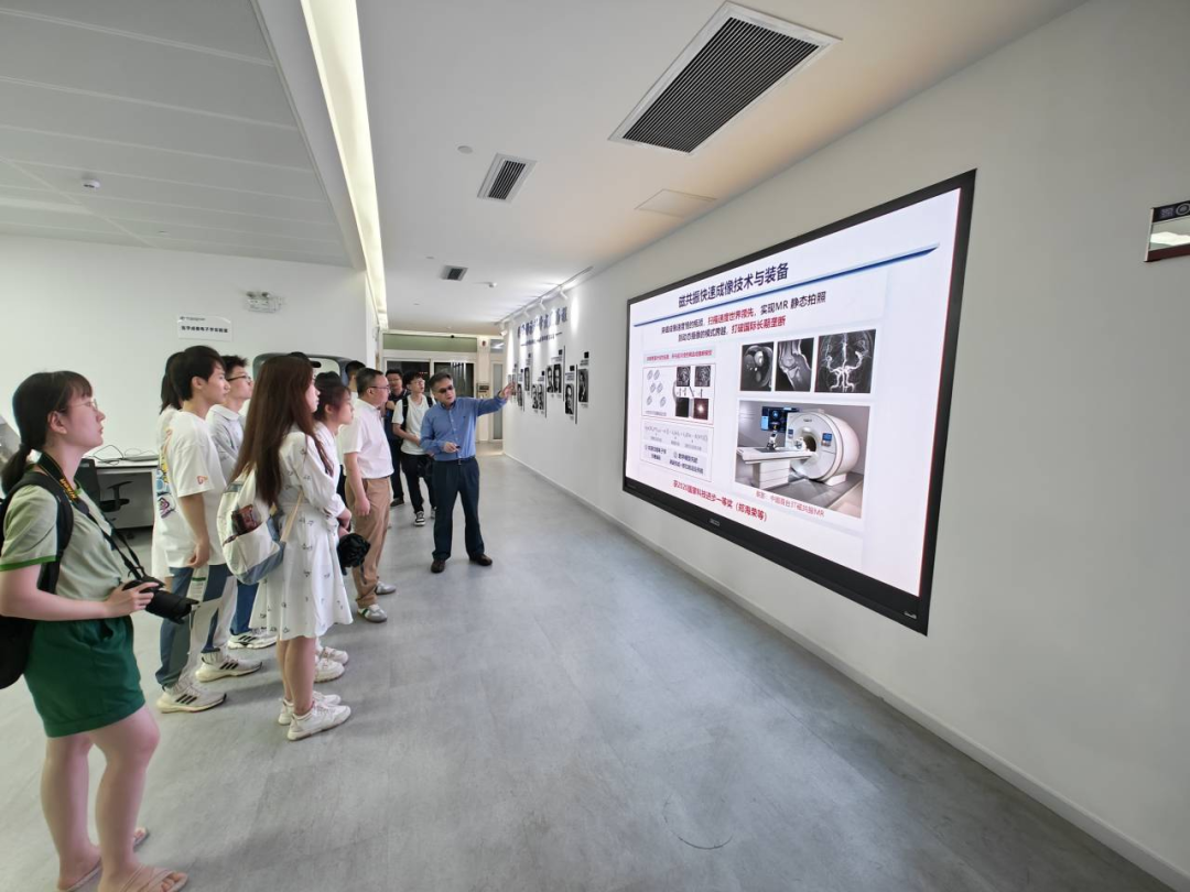 先进院成立于2006年,由深圳市人民政府、中国科学院与香港中文大学三方合作共建,愿景建成国家创新人才高地,建成国家高水平科技智库,跻身国际一流科研机构,我院多名博士毕业生就职于先进院。队伍一行首先参观了先进院劳特伯生物医学成像研究中心,刘主任为师生们详细解说了医学影像科学的发展历程,以及中心技术创新与产业转化的诸多成果。在这里,我们看到了由中心提出的磁共振快速成像技术与装备,该设备荣获了国家科技进步奖一等奖,达到世界领先的扫描速度,打破了国际长期的欧美垄断,其核心正是数学模型先验和傅里叶变换等数学原理,这让同学们深深感受到数学对于先进技术研究的重要性。
