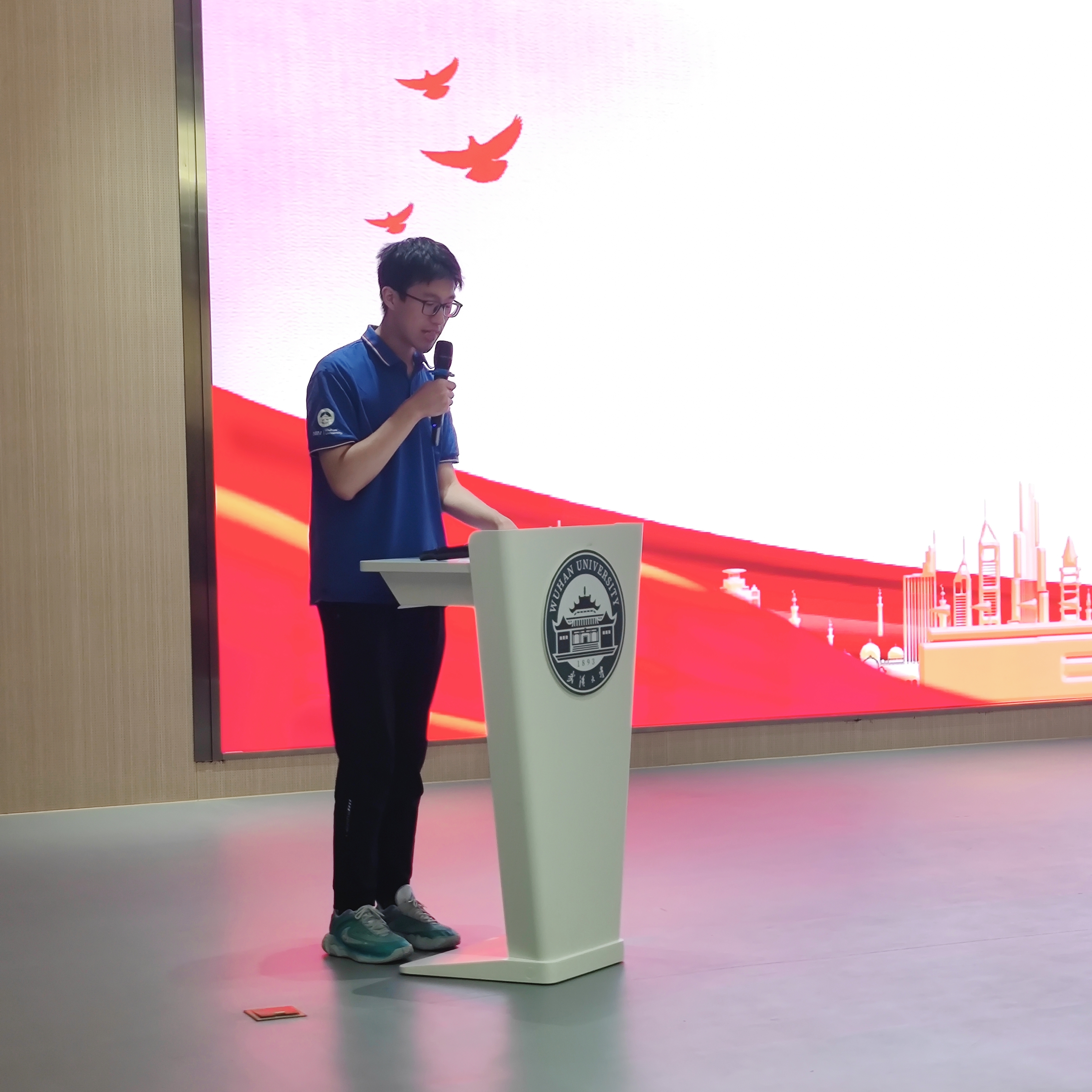 2021级本科生陈弈舟作为优秀学生党员代表发言。他分享了自己在本科四年间积极向党组织靠拢的历程:从大一递交入党申请书,到大二成为预备党员;从参与“青年红色筑梦之旅”实践活动,到前往沽源县、崇阳县支教;从担任学院青协负责人组织志愿服务,到作为学生党支部书记开展党日活动。他表示,党组织的培养让自己从内向青年蜕变为勇于担当的新时代党员,呼吁全体毕业生党员胸怀“国之大者”,在服务人民福祉的实践中诠释使命担当�