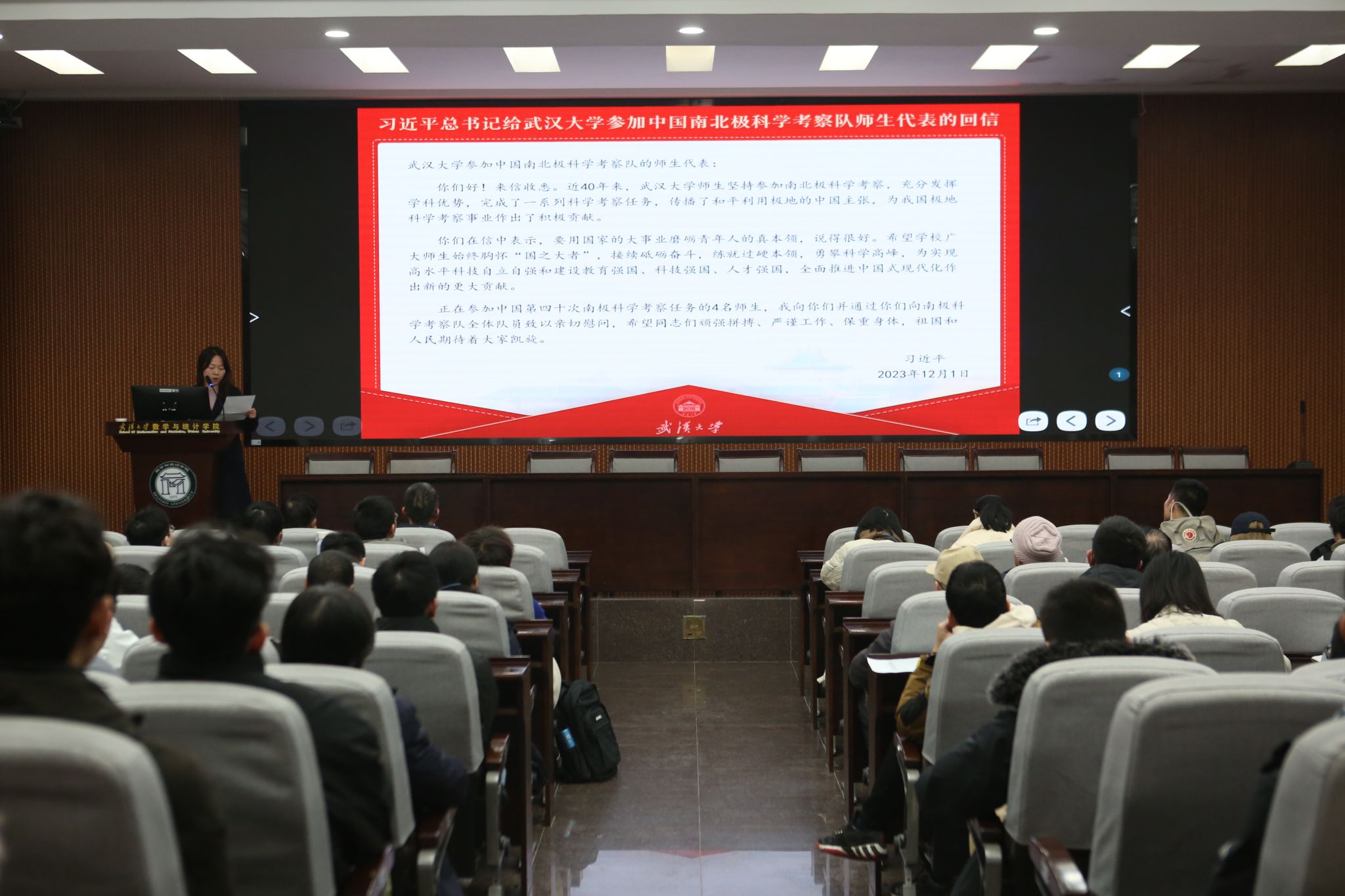 参加南北极科学考察队师生重要回信精神辅导报告会。成人导航