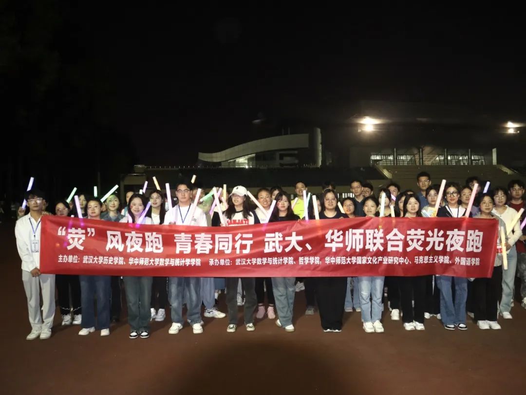 与华中师范大学两校研究生会联合举办2023年“‘荧’风奔跑,青春同行”荧光夜跑活动。