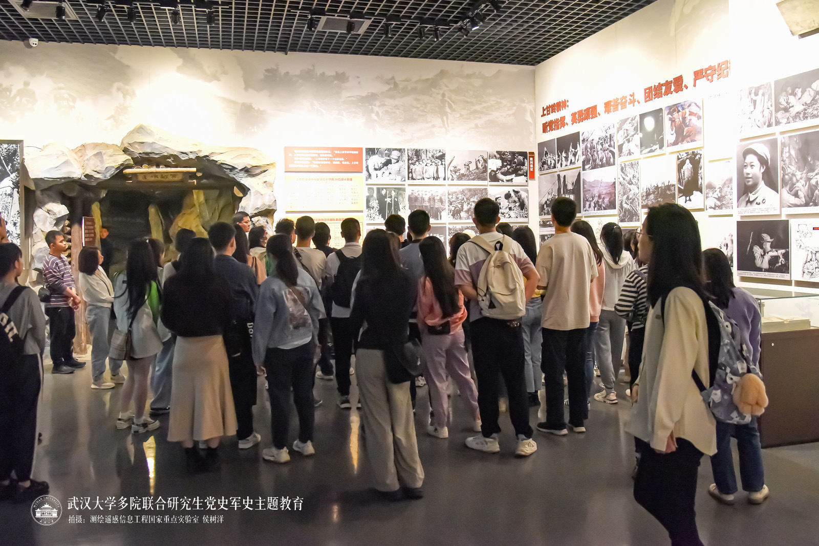 4�16日上午,为深入学习贯彻习近平新时代中国特色社会主义思想和党的二十大精神,推动思想政治教育走深走实,以饱满精神喜迎武汉大学和武汉大学数学学科成�130周年,我院组织研究生党团学骨干,与新闻与传播学院、法学院、口腔医学院、中国边界与海洋研究陀国际问题研究生、测绘遥感信息工程国家重点实验室联合组队,赴全国爱国主义教育示范基地-孝感市空降兵军史馆开展“赓续军队红色血� 激扬青春奋进力量”主题参观学习�