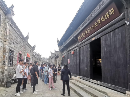 上午十时,师生一行来到位于大别山南麓、鄂豫两省边际的中国第一将军县红安--七里坪镇。在讲解员的带领下,党员们沉浸式参观了长胜街革命遗址群,包含苏维埃工会、苏维埃银行、七里坪革命纪念馆等。大家深刻体会到革命先烈为了民族崛起,将共产党人的革命火种传播到红色土地的坚定信念。怀着无比崇敬的心情,党员们在列宁小学的教室里齐唱了《八月桂花遍地开》。
