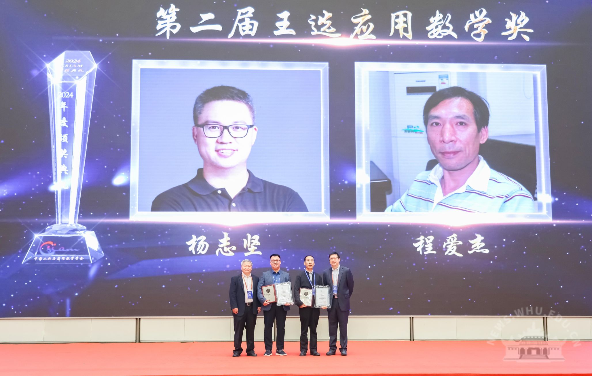 据了解,王选应用数学奖由中国工业与应用数学学会设立于2018年,以奖励在数学研究成果落地应用并产生重要价值方面做出突出贡献的个人。王选应用数学奖每两年颁发一次,每次获奖者不超过2名。该奖项的首届获奖者是深圳香港中文大学(深圳)罗智泉院士;第二届获奖者是我校杨志坚教授、山东大学程爱杰教授。本次会议上,中国科学院院士、我校武汉数学与智能研究院学术委员会主任鄂维南荣获我国应用数学领域最高奖项——苏步青应用数学奖。